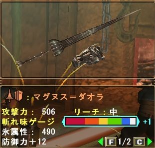 今回のパッケ特典武器。強化していくと氷+麻痺の双属性に。