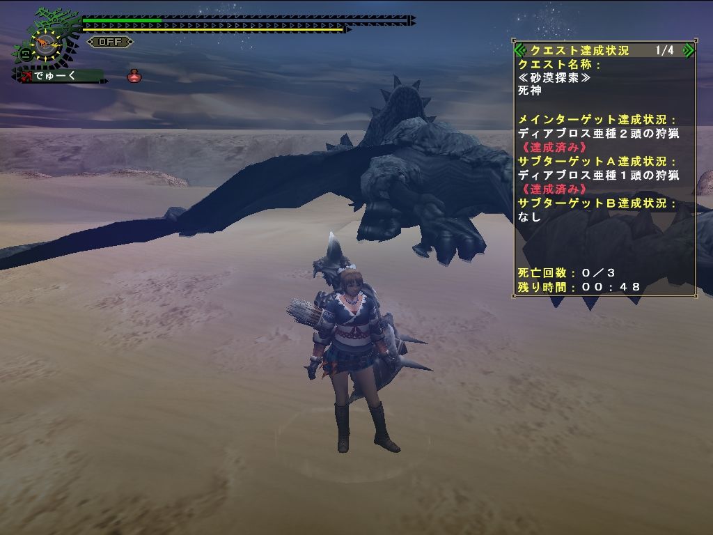 今回は1匹目8分少々(2エリア)。2匹目を19分(3エリア)少々で討伐。