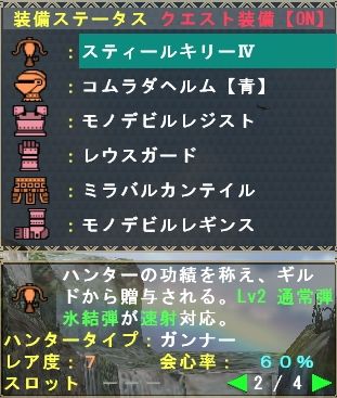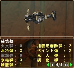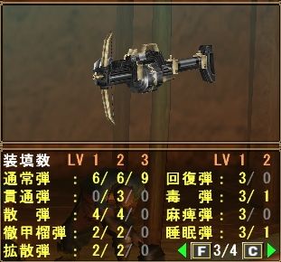通常弾Lv2と氷結弾が速射仕様のようです。貫通Lv2の装填数が4~6