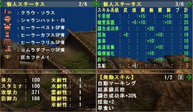釣力SP、武器スロに万手2個ぶっ込んでます。