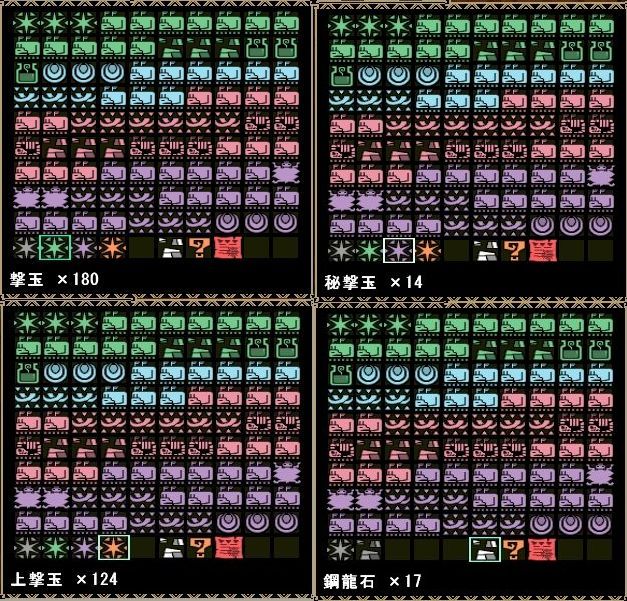採掘結果は 撃玉180 上撃玉124 秘撃玉14 鋼龍岩17