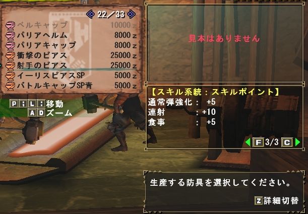 2日目の防具、射手のピアスをゲット。1部位で連射+通常弾強化まで