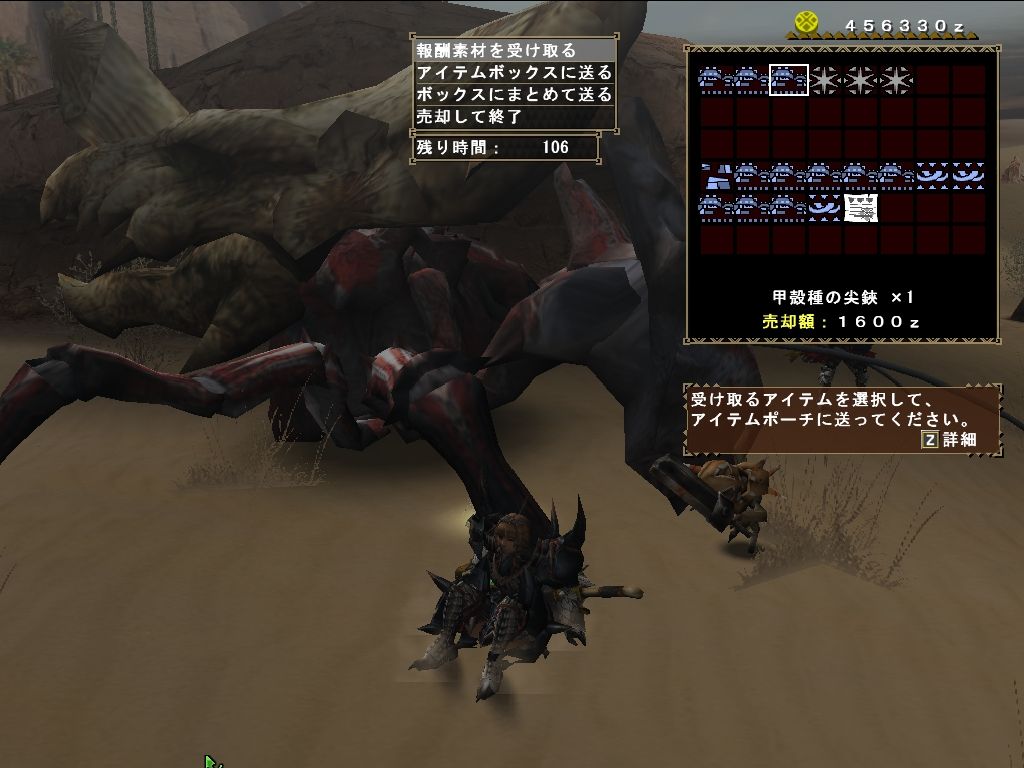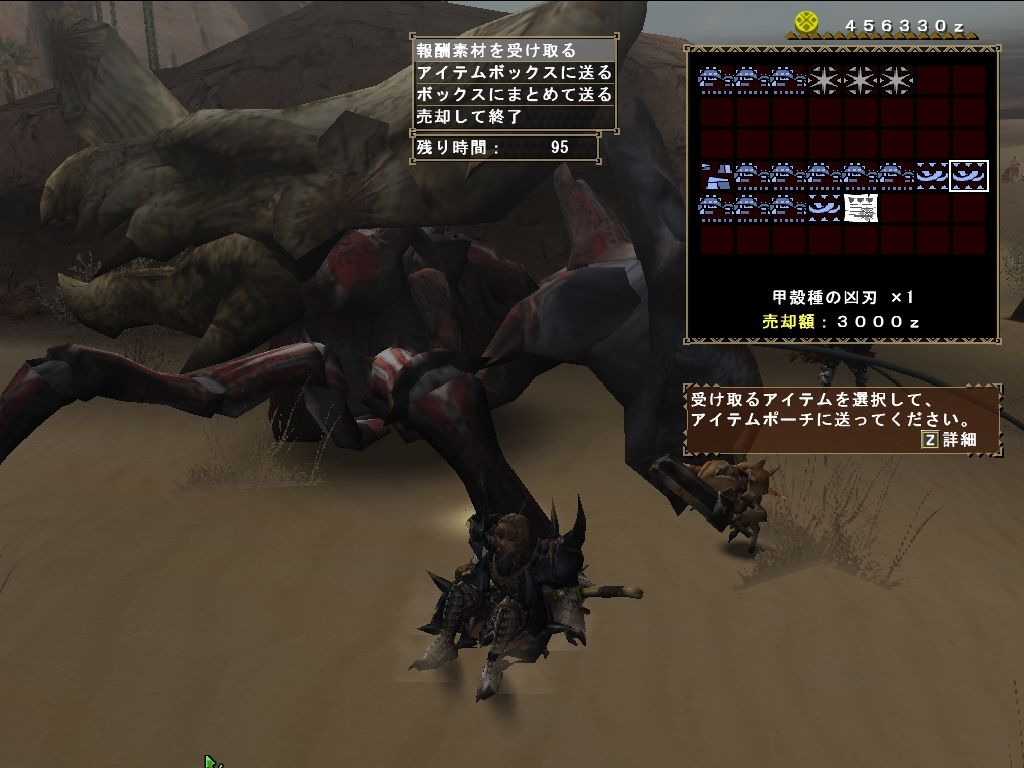 サブBからは刃も。甲殻系も出てた気がするので、一通りの蟹素材が出る