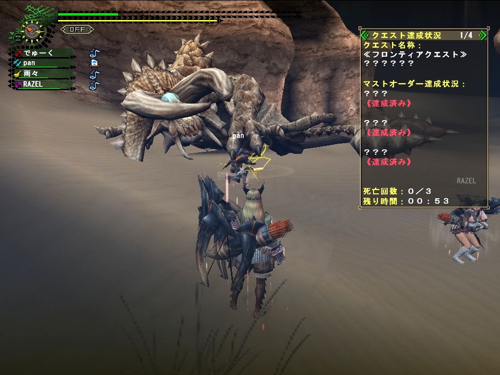 僕&ラゼぽんが火事場弓で、ラゼぽん&パンさんチームが砂を担当し、