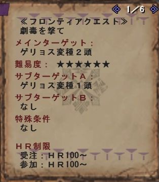 ということで新しいフロンティアクエストの劇毒を撃てに早速挑戦してみる。