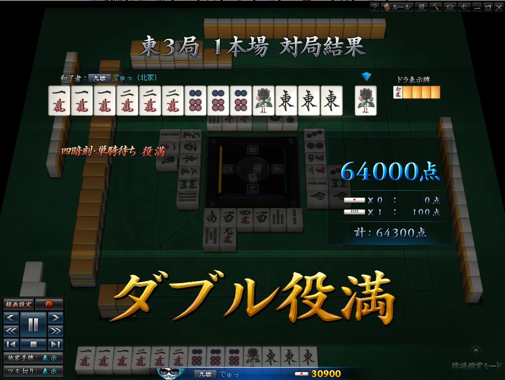 ということでいきなり役満ゲット^q^初めての役満はすったんでしたよっ。