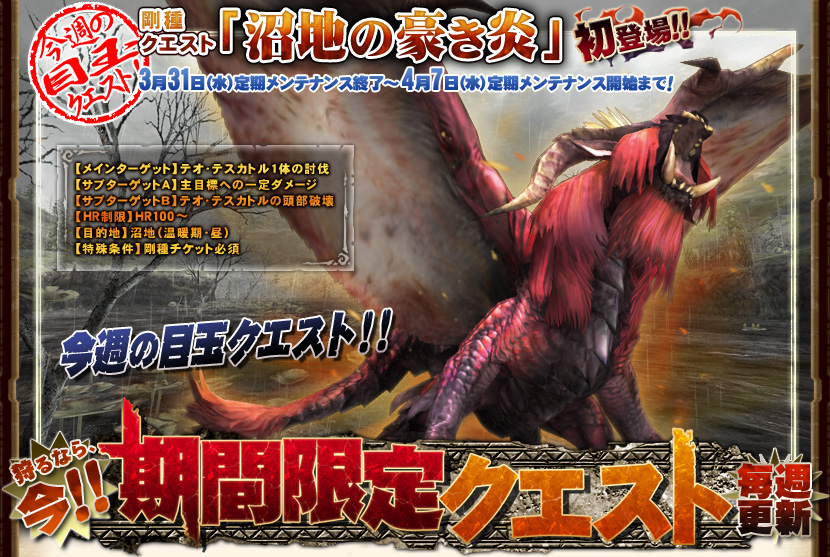 イベント更新!古龍種の牙来るかもね^q^テオ証0だし丁度いいかもね。