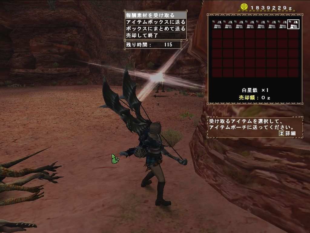 ということでMHF。白星鉄をこっそりと集めてみた。まずは闇商人クエに